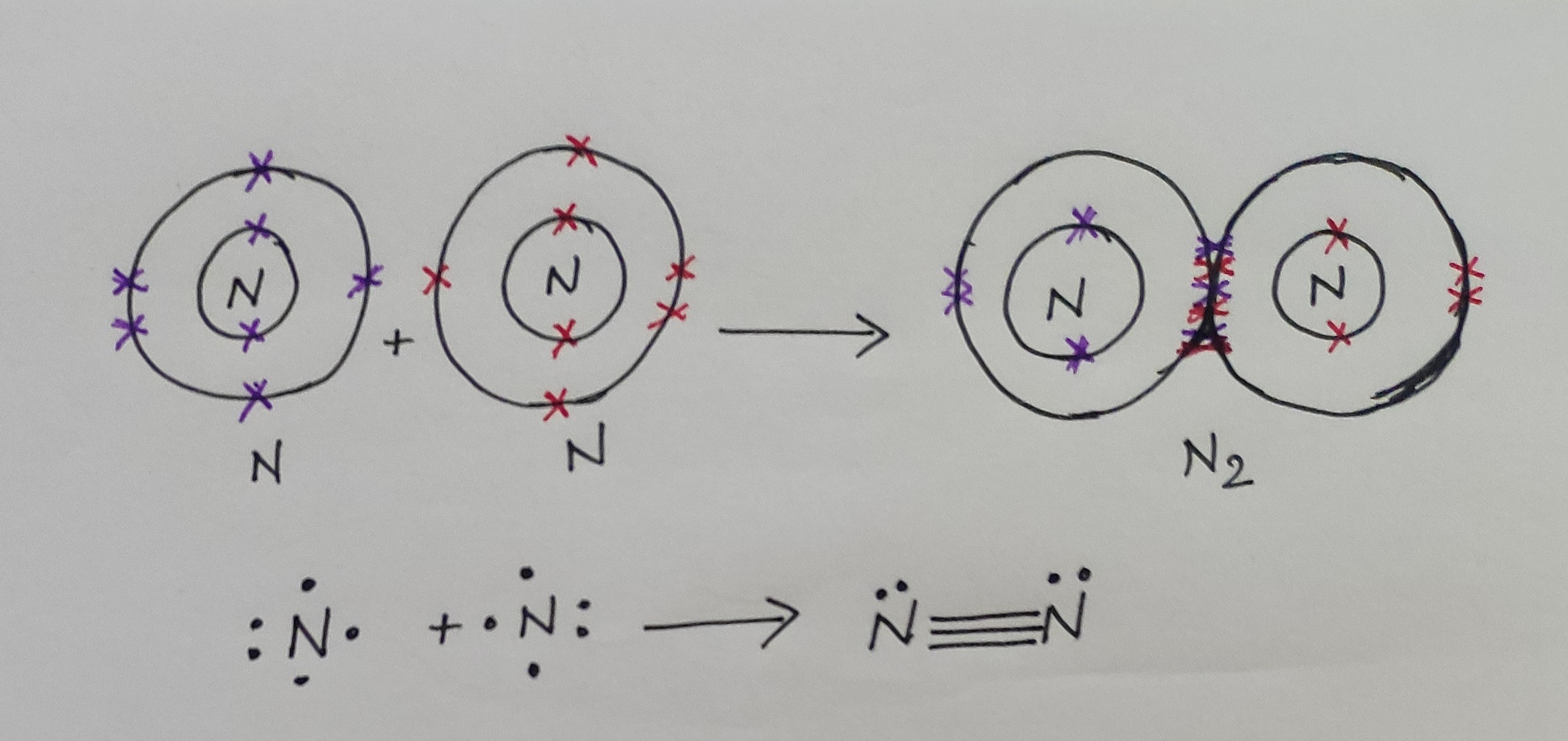 The fourth contains a nonbonding pair of electrons that plays an important role in the chemical properties of amines... One nitrogen gas molecule consists of two nitrogen atoms. It's the most common uncombined (pure) element on earth. 22/05/2007 · nitrogen is atomic number 7, which means each nitrogen atom has 7 protons.